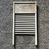 Before the intention of washing machines, all laundry was done manually. One of the key components in this process is a washboard, like this Mother Hubbard Standard Roller Washboard made by Mother Hubbard Incorporated from Mendote, Illinois, on display. To wash your clothes in the 19th and early 20th centuries, first you needed to prepare a tub of soapy water and soak the clothes, especially whites, for 10-15 minutes. Then, place a section of the wet, soapy garment onto the corrugated surface of the washboard and rub it vigorously, applying pressure to scrub out dirt and stains. You can reapply soap directly to stubborn areas as needed. After washing, wring out the soapy water and transfer the clothes to a tub of clean rinse water. Rinsing thoroughly, usually requiring two or three rinses. Finally, Wring out excess water from the clean clothes and hang them to dry. Alternatively, you can use this wash board as a music interment which can be played by dragging, tapping, or striking its surface with various implements like thimbles, whisks, or bottle openers to create rhythmic sounds. And in a jug band or Zydeco music, the washboard often plays on the off-beats (like the second and fourth beat in a four-beat measure) or provides counter-rhythms to other percussion instruments.